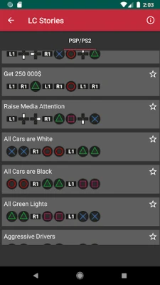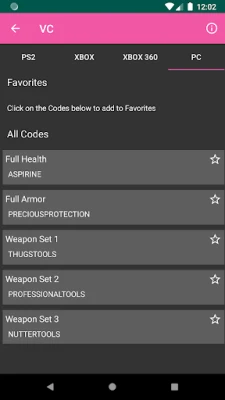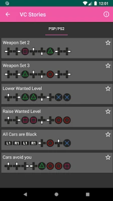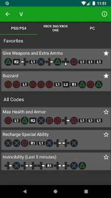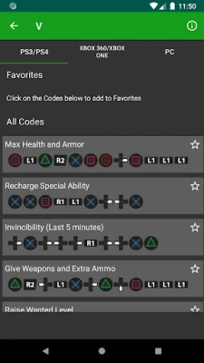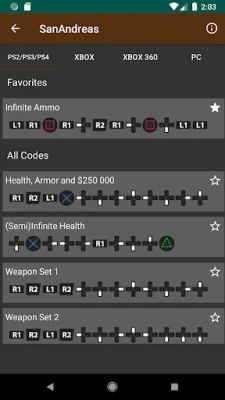 App with cheat codes for various open world games and with functionality to create Favorites list.