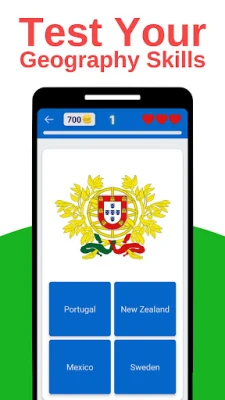 Embark on a thrilling journey to test your geography knowledge with this innovative quiz app. Featuring stunning photos of country emblems from around the earth, you'll be immersed in a world of geographical wonder.